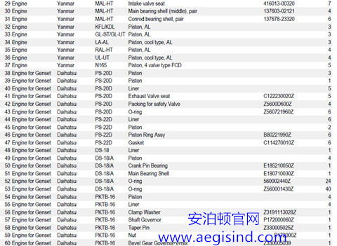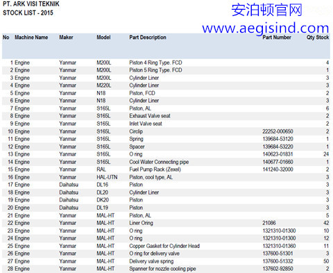 2015年3月,安泊頓印度尼西亞公司雅加達(dá)倉庫新到一批船舶配件,部分名錄如下: